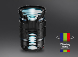 Odkryj spektakularną jakość zdjęć. Soczewki z wyjątkowymi powłokami Z Coating Nano redukującymi rozbłyski, stabilizacja obrazu eliminująca rozmycia, szybki autofokus, wytrzymała konstrukcja – wszystko, dzięki czemu otrzymasz zdjęcia niezwykłej jakości.